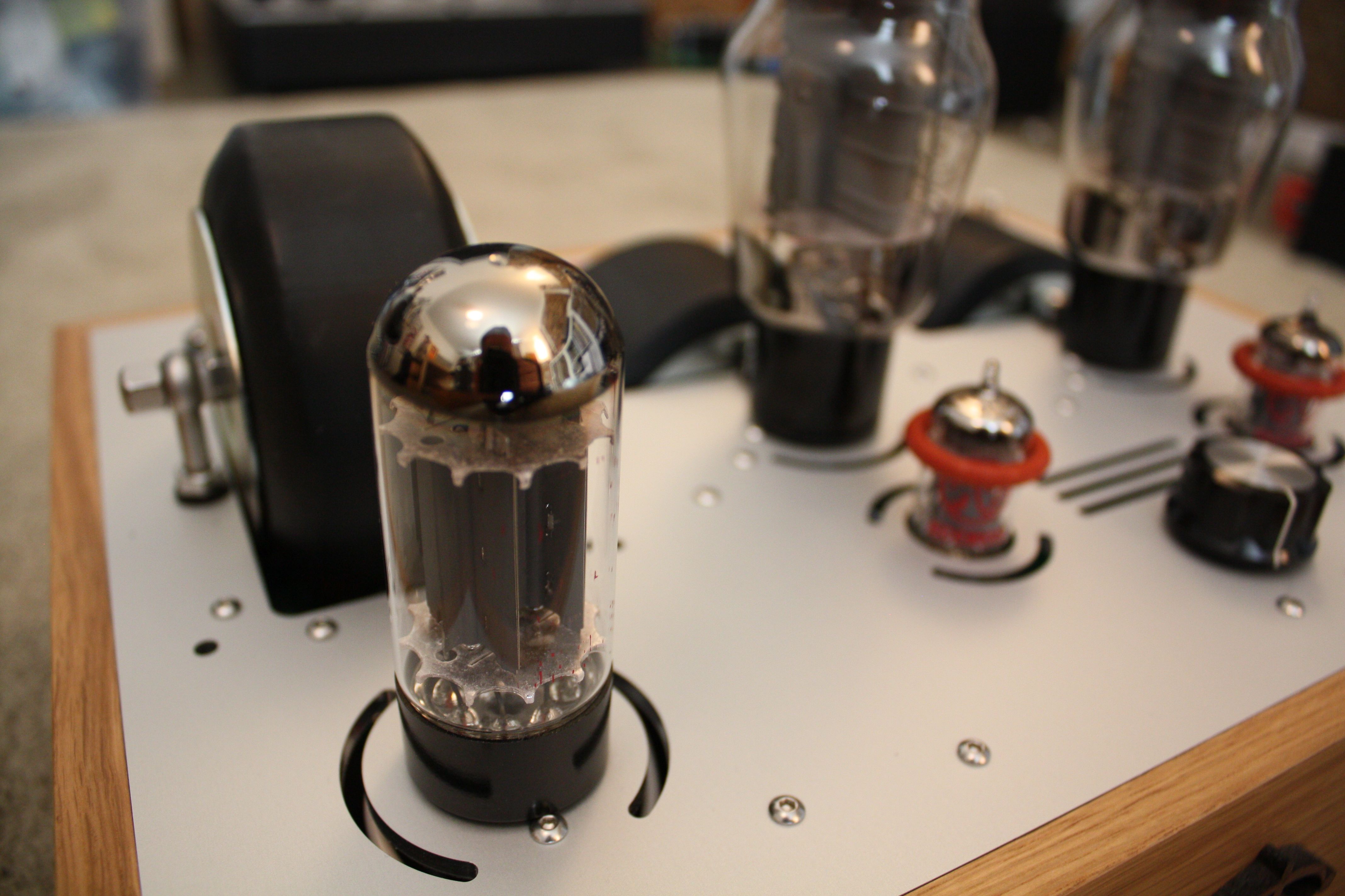 Le set de tubes fourni en standard comprend une valve GZ34 et une paire d’ecc83S/12xa7 de JJ/Electronics. Les 300B sont des PSVANE.