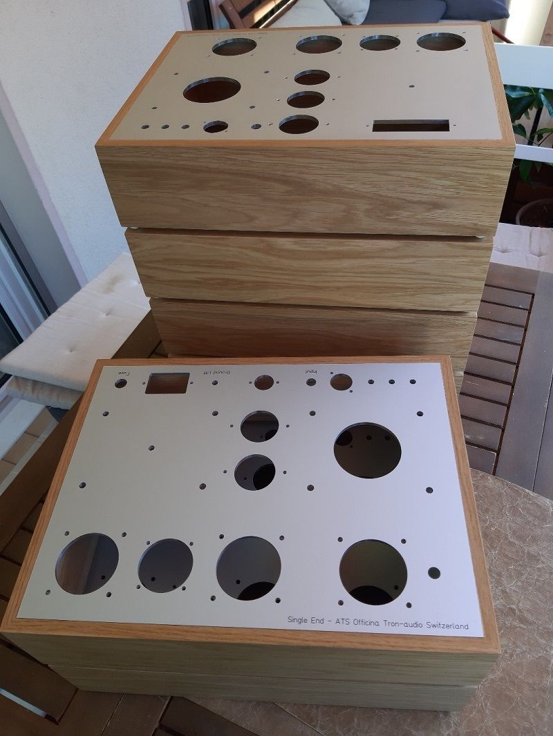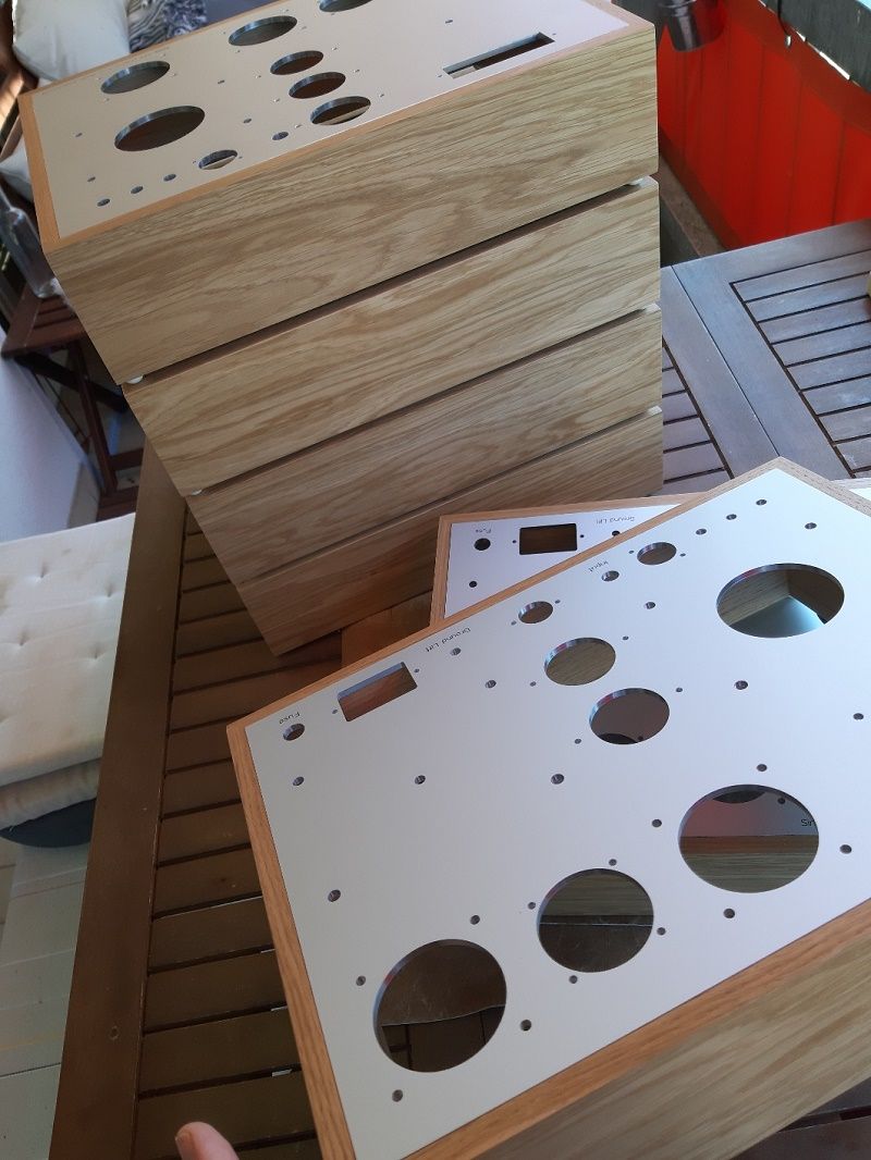 Pour la réalisation des boîtiers des différentes gammes d'appareils nous avons choisi le bois et privilégié un design sobre et vintage. Nous souhaitions également pouvoir voir et accéder très facilement à l'intérieur du boitier. C'est pourquoi en standard les boitiers n'ont pas de fond.