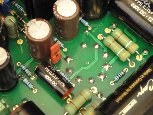 La carte intègre également une section basse tension totalement indépendante spécialement réalisé pour alimenter à basse impédance la cathode d'une triode de puissance. Elle utilise un redressement en pont à l'aide de diodes rapide soft recovery en boitier TO220, d'un régulateur faible perte de type LT1086 ainsi que de condensateurs de lissage et ballast ZLH de 10'000uF.