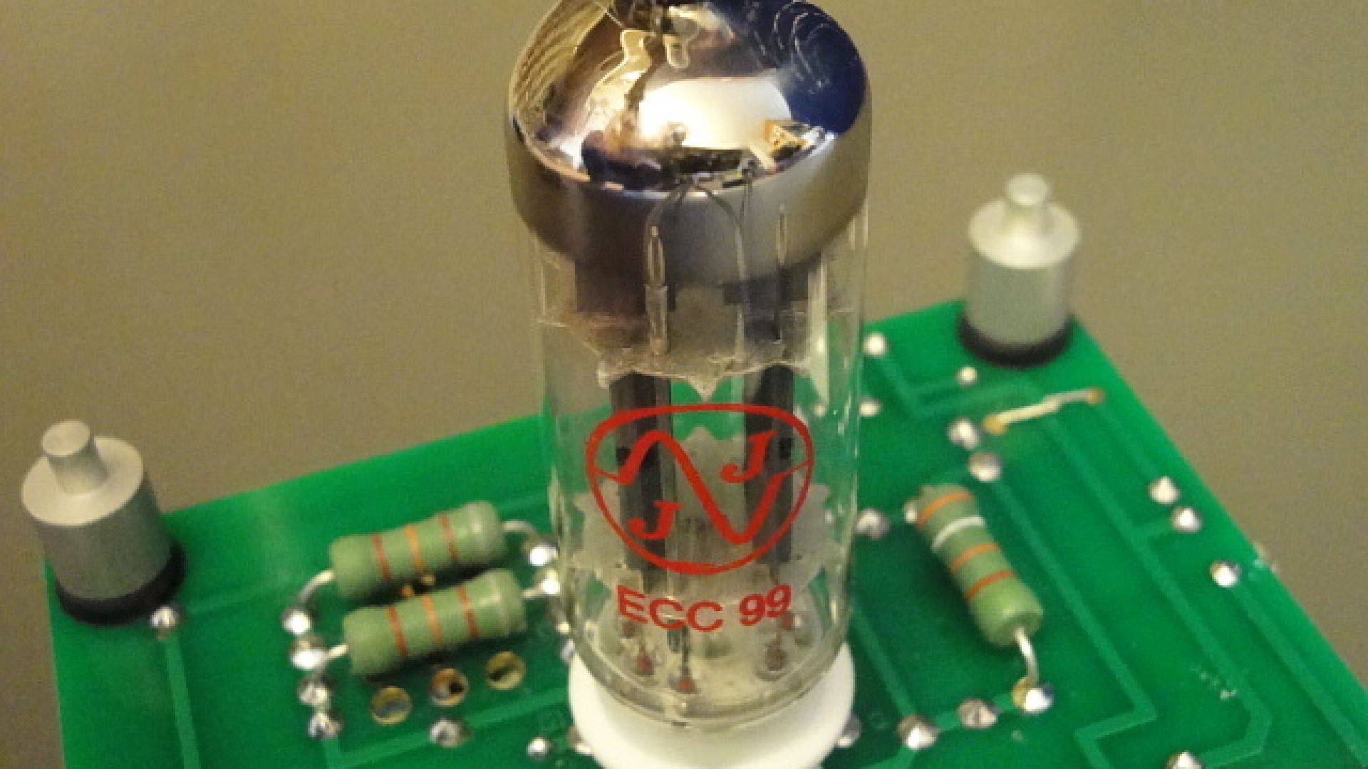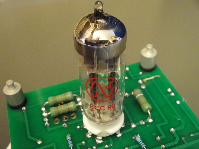 Cette carte de pré amplification et de commande emploie une double triode de type ecc99 dans une configuration anode follower en cascade avec un condensateur de liaison inter-étage. Cet arrangement basique offre l'avantage d'obtenir un gain élevé avec une seule double triode.