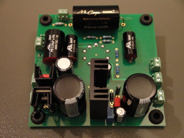 La carte intègre également une section basse tension totalement indépendante spécialement réalisé pour alimenter à basse impédance la cathode d'une triode de puissance. Elle utilise un redressement en pont à l'aide de diodes rapide soft recovery en boitier TO220, d'un régulateur faible perte de type LT1086 ainsi que de condensateurs de lissage et ballast ZLH de 10'000uF.