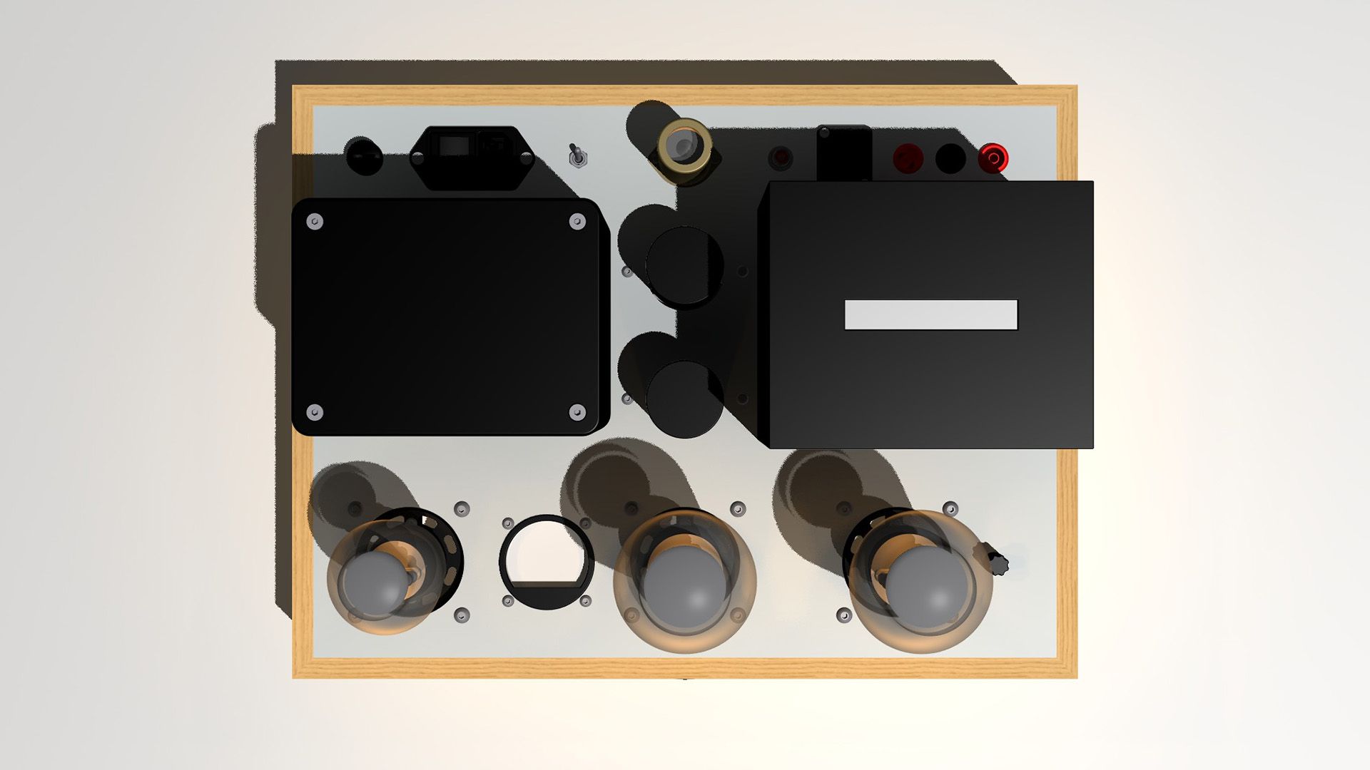 L'alimentation générale est réalisée à l'aide d'un transformateur torique sur-mesure associé à une valve GZ34 ou 5u4g. Celle des cathodes des triodes de puissance est faite avec une tension alternative via deux enroulements dédiés du transformateur. Deux potentiomètres de réglage balance permettront au besoin d'obtenir un équilibrage parfait des chauffages.
